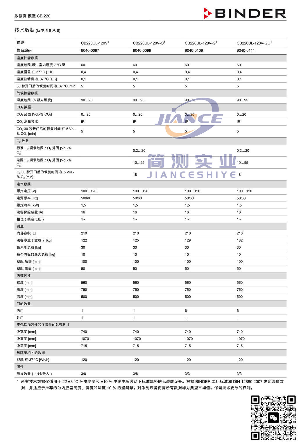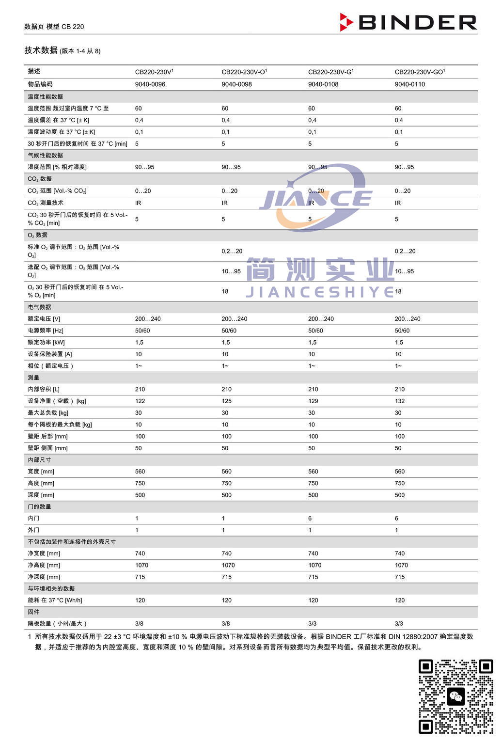 Product display简要描述:CB220 CO₂培养箱适用于所有敏感的培养任务并保证最佳的细胞生长环境。即使是在缺氧条件下的复杂培养方法或个性化生长环境,BINDER 培养箱凭借其广泛的选购件及配件产品范围也可轻松胜任。