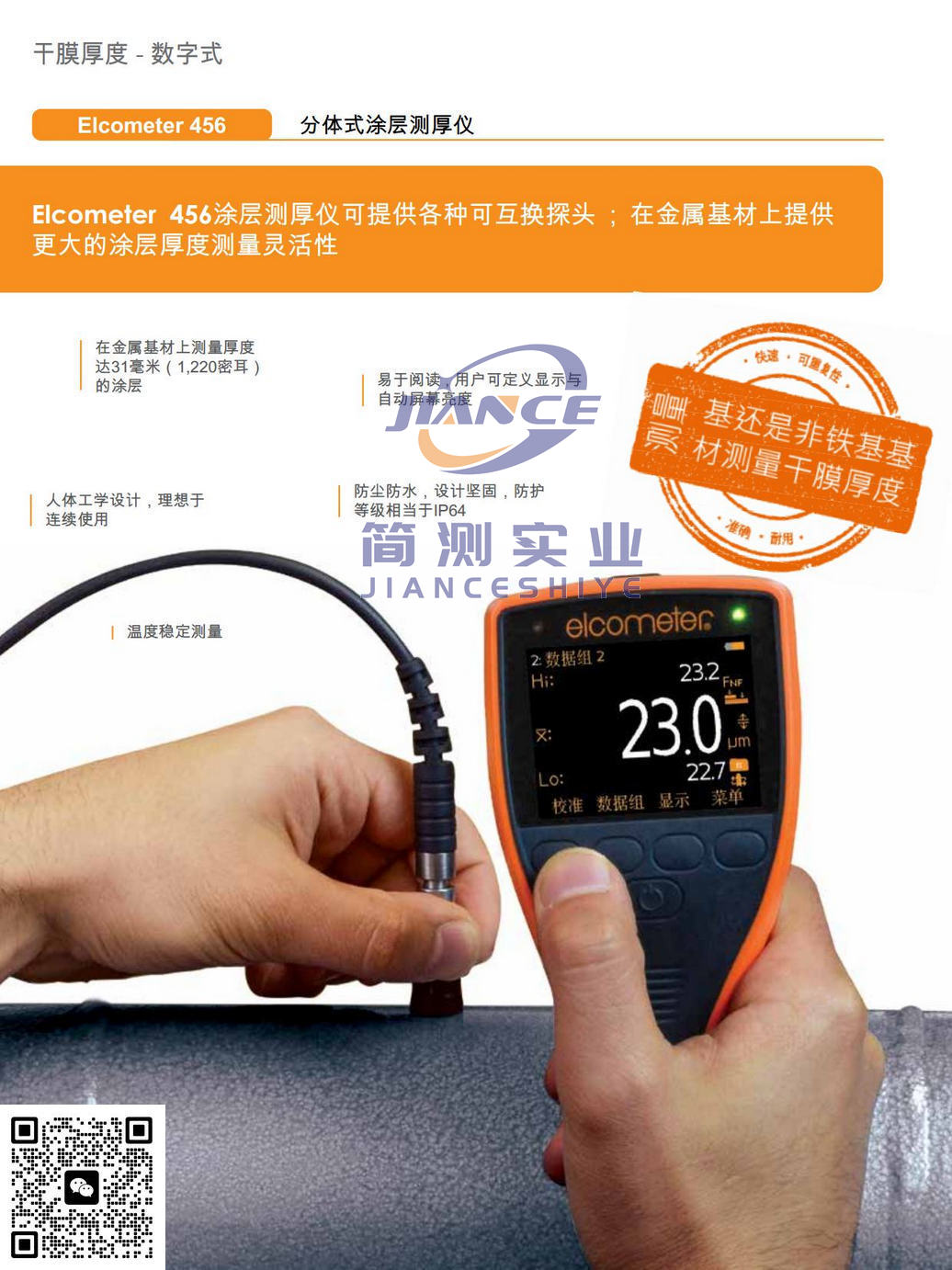 Product display简要描述:易高A456CFNFSS涂层测厚仪,搭载探头可适用于测量钢铁及有色金属上的涂镀层厚度。