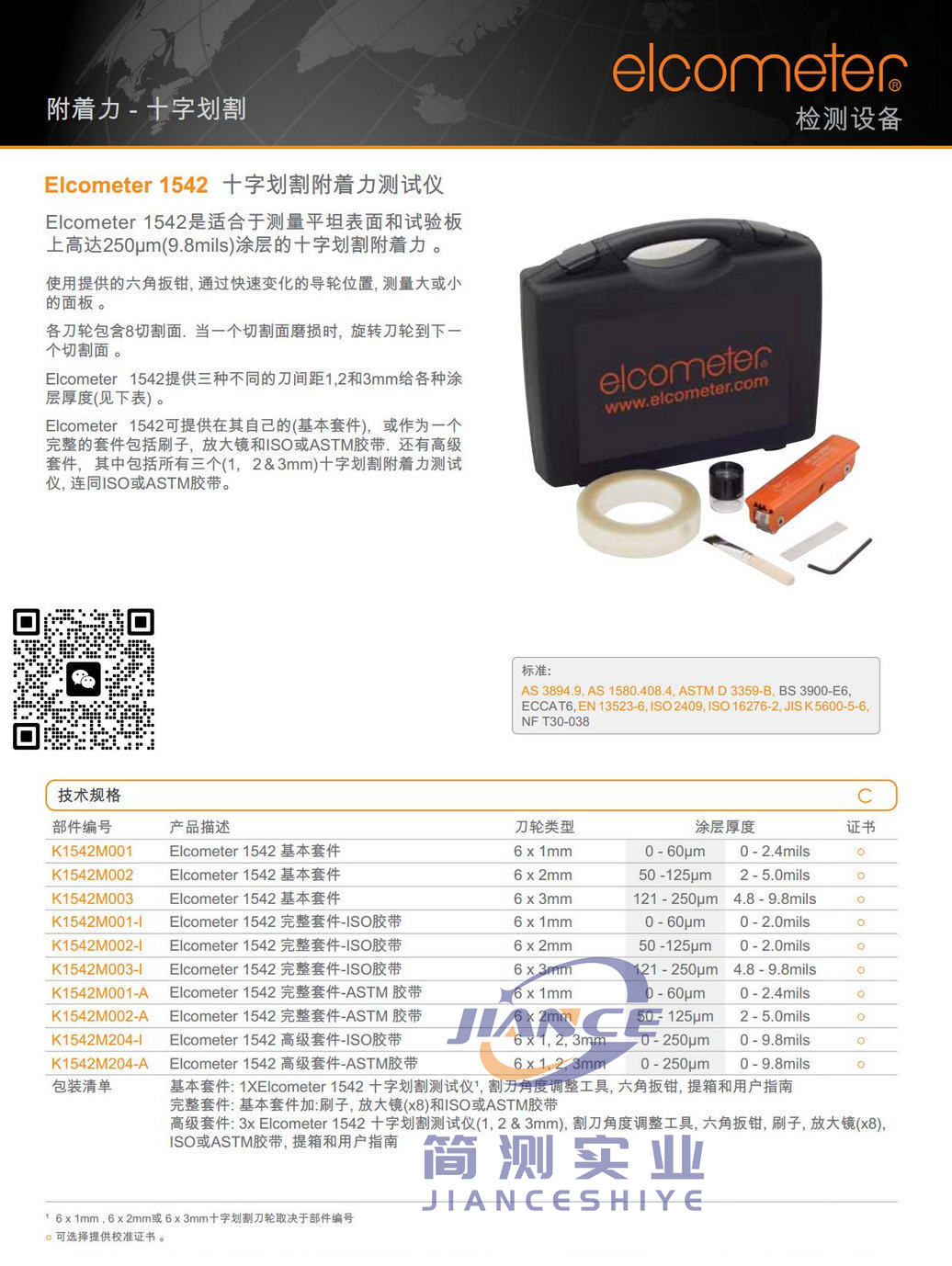 Product display简要描述:Elcometer 1542十字划割附着力测试仪是适合于测量平坦表面和试验板上高达250µm(9.8mils)涂层的十字划割附着力。