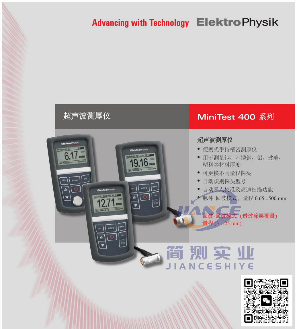 Product display简要描述:EPK MiniTest420超声波测厚仪适用于各种板材、管材、油罐、输油管、锅炉容器壁厚及其局部腐蚀、锈蚀的检测。适用于炼油、钢铁、冶金、造船、机械、化工、电力、原子能等各工业部门的产品检验。