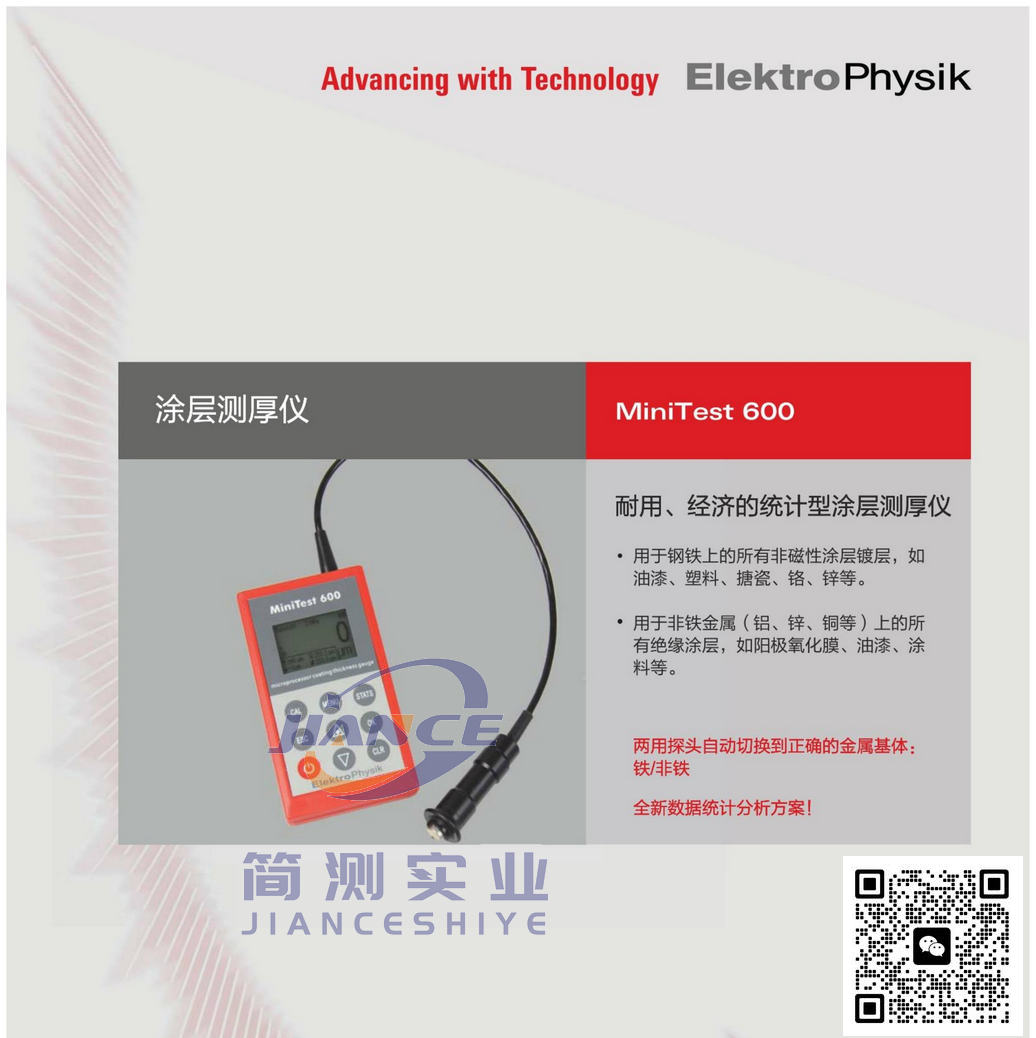 EPK MiniTest600BF涂层测厚仪是一款简洁、实用的便携式涂层测厚仪,是专为无损、快速、精确测量涂层厚度而设计的。
